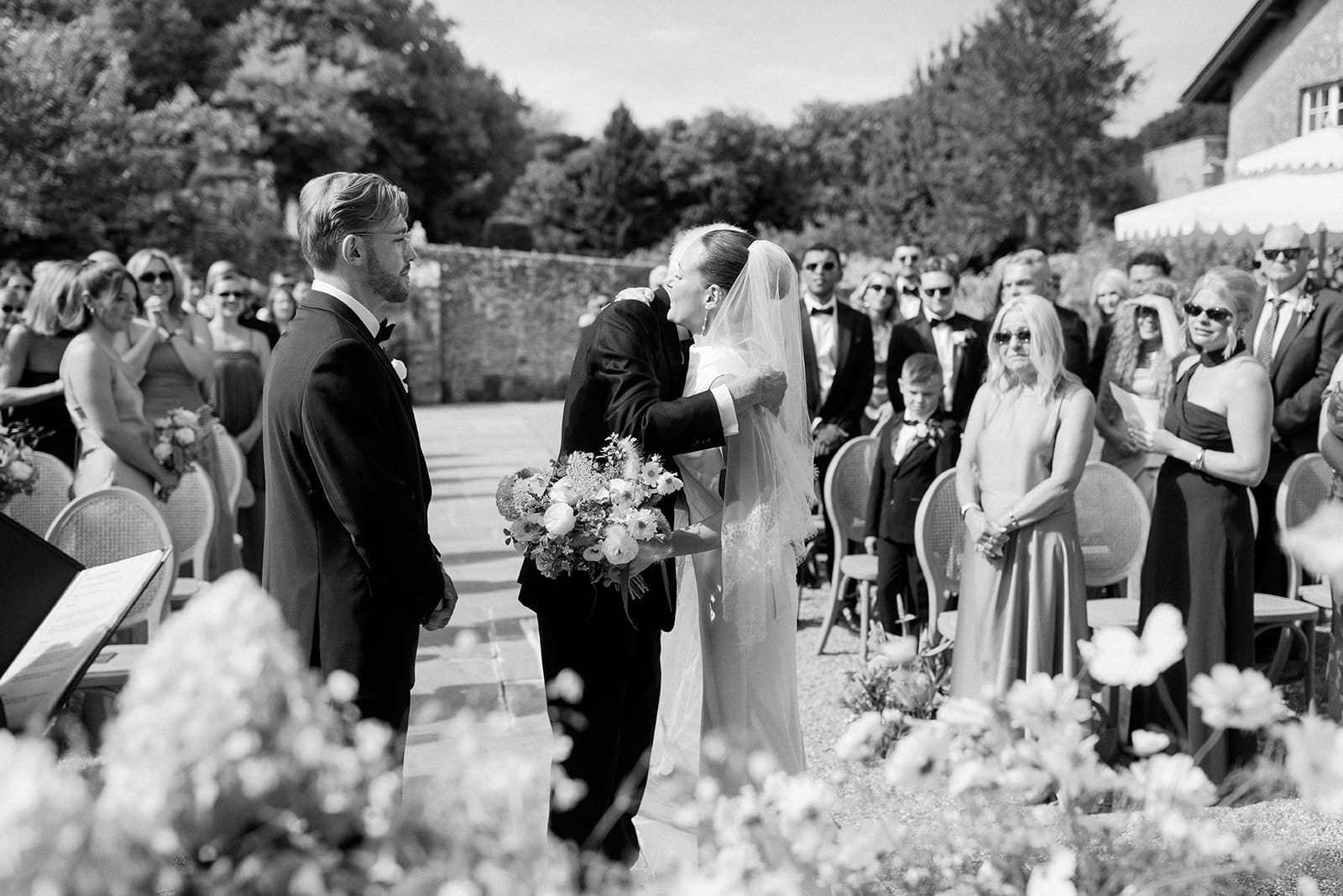 The couple were incredibly lucky with the weather – one of those rare, flawless days that feels tailor-made for an al fresco wedding, with warm sunshine and clear blue skies setting the tone for a relaxed yet romantic atmosphere.